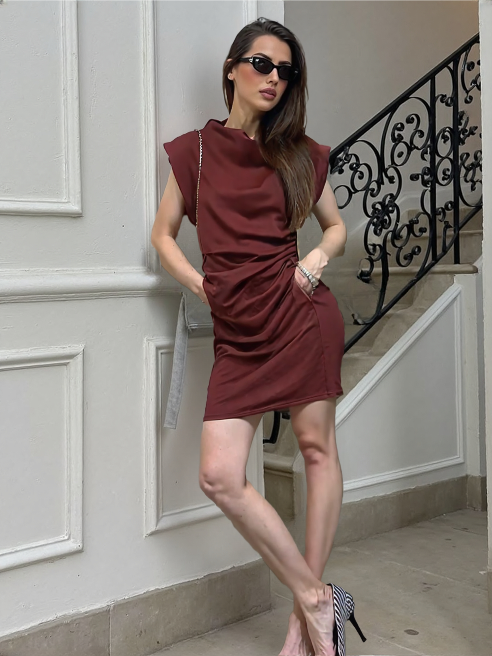 Preparati a un look da urlo con il nostro Mini Abito con drappeggio! Questo vestitino corto è stato disegnato per esaltare la tua silhouette con un'eleganza moderna e audace. È il tuo nuovo segreto per sentirti glamour ad ogni uscita. ✨