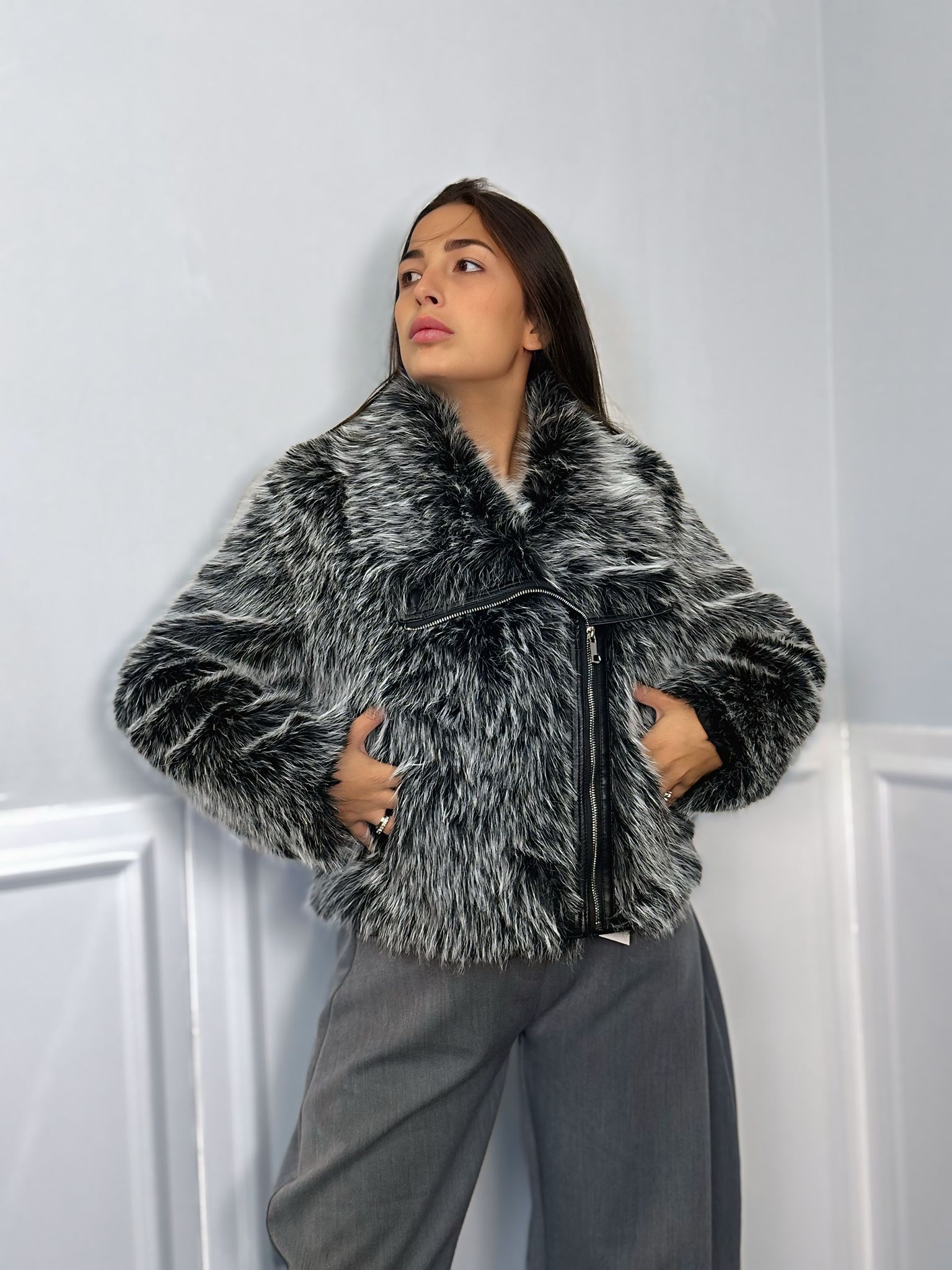 La giacca in pelliccia ecologica che stavi cercando! ✨ Il nostro modello chiodo, con pelo medio super soffice, è l'unione perfetta tra grinta rock e l'eleganza sofisticata. La zip frontale aggiunge un tocco moderno, rendendo questo capo versatile e perfetto per un look di tendenza. Indossala su un abito da sera o su un paio di jeans e t-shirt, per un outfit che non passa inosservato. 💖