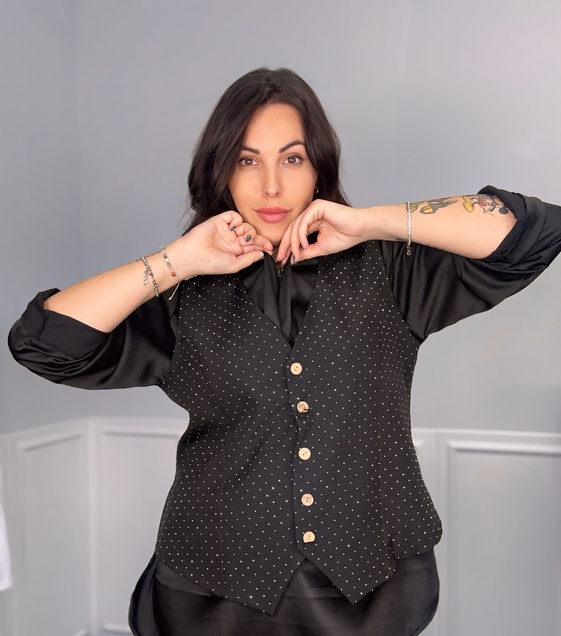 Indossalo sopra una camicia per un look elegante o da solo con un pantalone a vita alta per un outfit da vera trendsetter. Mille abbinamenti, un solo protagonista: GlitzVibe™. 💃