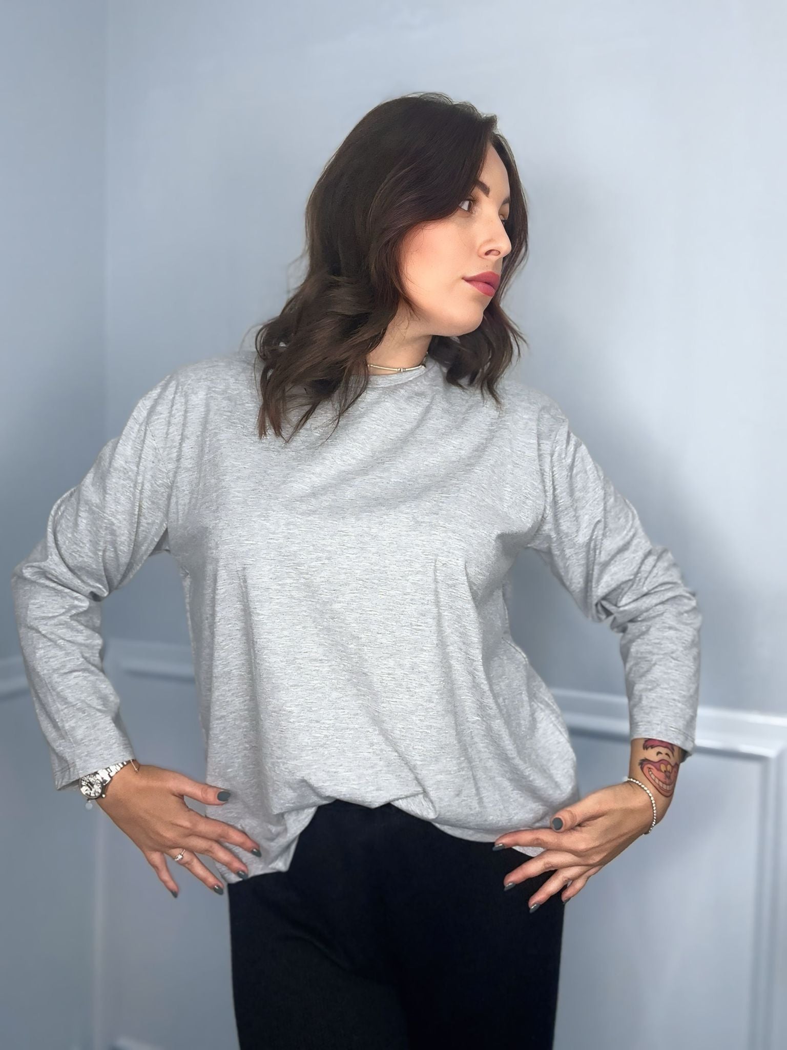 Riscopri il potere di una maglia in cotone che non solo ti coccola, ma ti valorizza come nessun'altra! Questa maglia a manica lunga è il remix perfetto tra il comfort essenziale e il design strutturato, ideale per celebrare la tua bellezza taglia comoda.